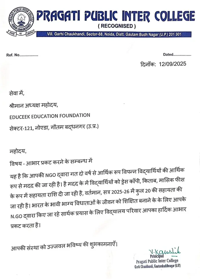 We are ​Educeek Education Foundation, dedicated to making a difference in people's lives mainly by means of providing education, providing food, providing Books and Stationary and helping them in getting admission in the school.